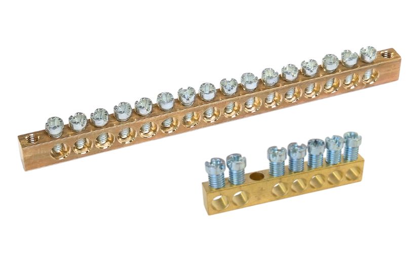 connecteurs et barres de mise à la terre, barres taraudées, répartiteurs, isolateurs ;