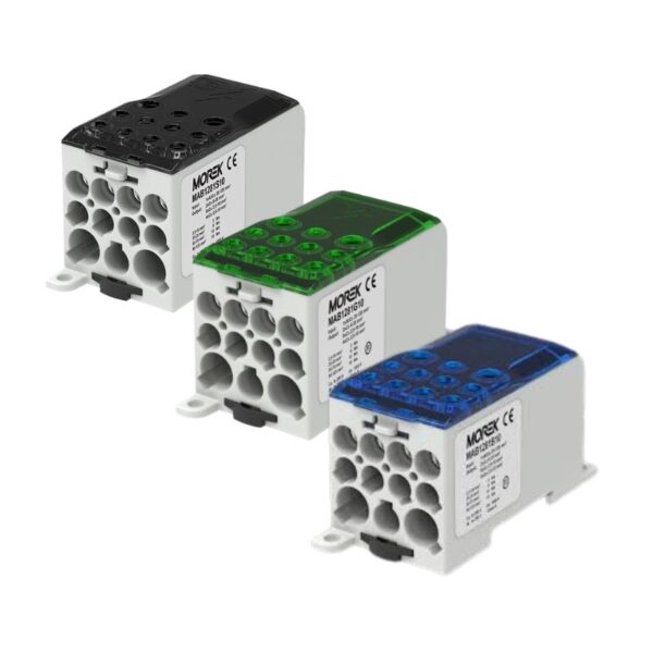 | MAB1281B10 | Bleu / Gris | 1x 35-120 mm² | 4x 2.5-10 mm² / 5x 2.5-16 mm² / 2x 6-35 mm² |